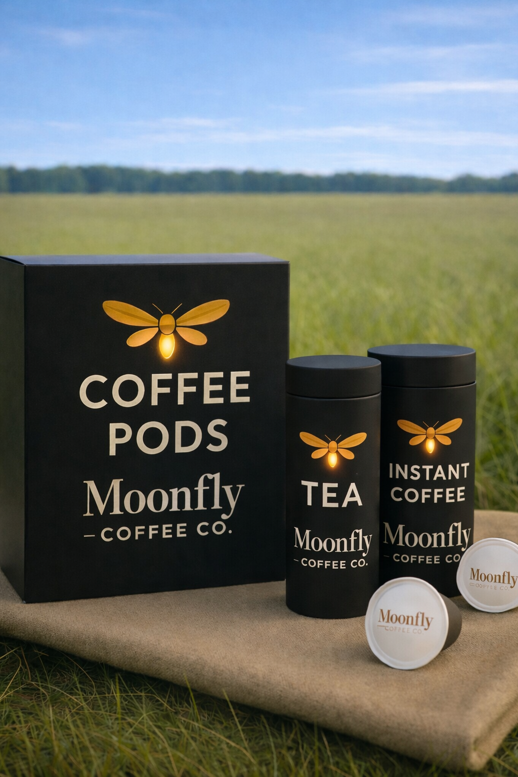 Moonfly collections bring the same spirit to everything we make—coffee, clothing, and the gear that carries them. Our beans and grinds are fresh-roasted and story-numbered, each tied to a moment worth remembering. Pods and instants keep that flavor and purpose close at hand—fast, simple, real. And our apparel and gear extend the story beyond the cup, built for comfort, movement, and the quiet places where light still shows up.