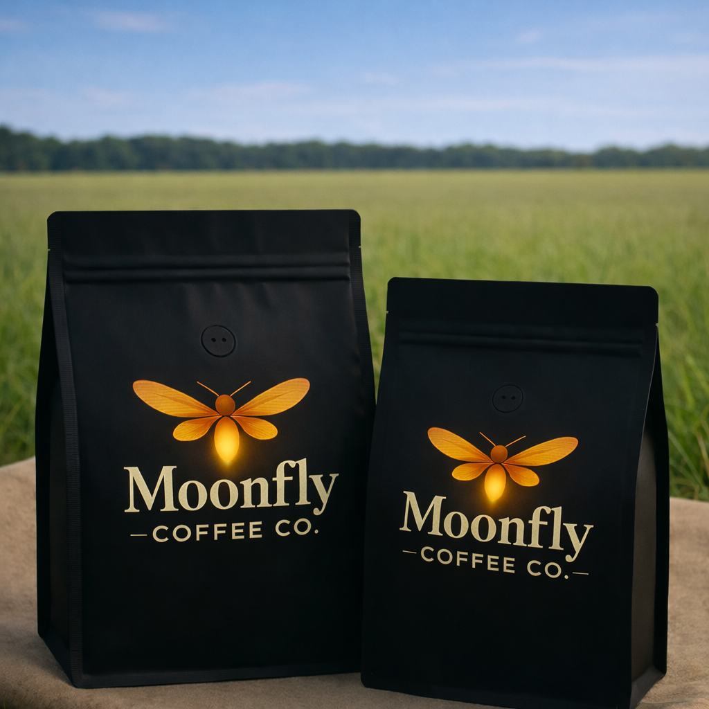 Moonfly collections bring the same spirit to everything we make—coffee, clothing, and the gear that carries them. Our beans and grinds are fresh-roasted and story-numbered, each tied to a moment worth remembering. Pods and instants keep that flavor and purpose close at hand—fast, simple, real. And our apparel and gear extend the story beyond the cup, built for comfort, movement, and the quiet places where light still shows up.